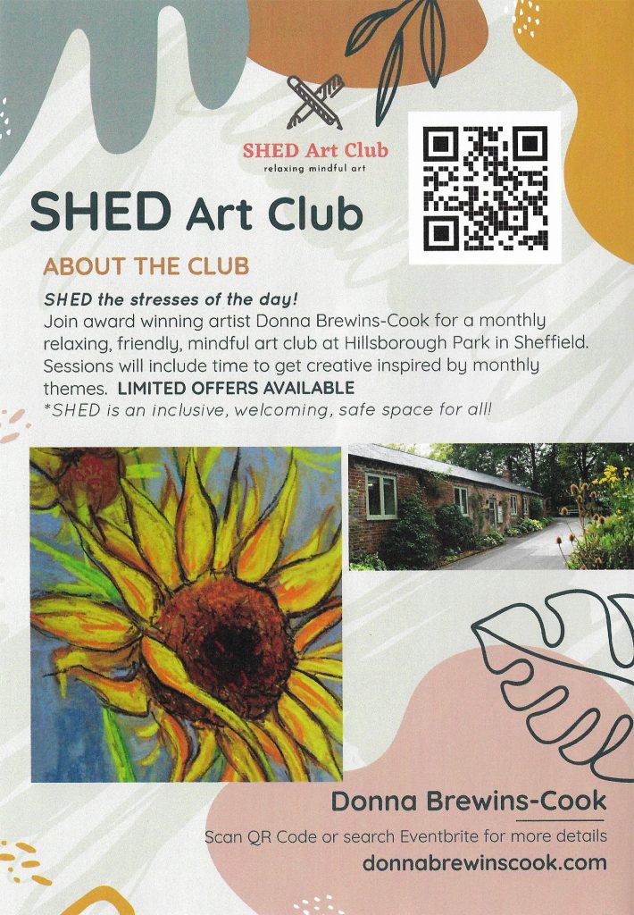 I am very excited to announce the launch of a new monthly wellbeing art class entitled SHED Art Club that I will be running at the Bradbury Makers Shed in Hillsborough Park.